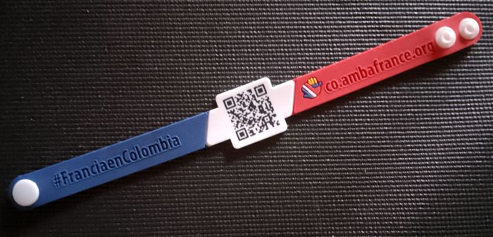 Nous repartons même avec un goodie, un magnifique bracelet en caoutchouc dont le QRCode t’amène directement sur le site de la Semaine de la France en Colombie!