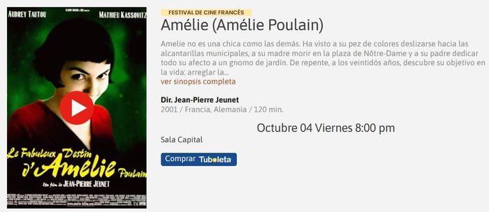 Le vendredi soir, je m’étais programmé un classique, que je n’avais vu qu’une fois en 20 ans et pas en salle, Amélie Poulain! Séance à 20h00, je n’avais pas acheté ma place en avance, via Tuboleta, me laissant le pouvoir de décision (fatigue, pluie,…). Au final je ne l’aurais pas eu …. le pouvoir de décision: séance complète quand j’ai regardé à 16h30. Rare… mais compréhensible vu le succès de cette œuvre à sa sortie.