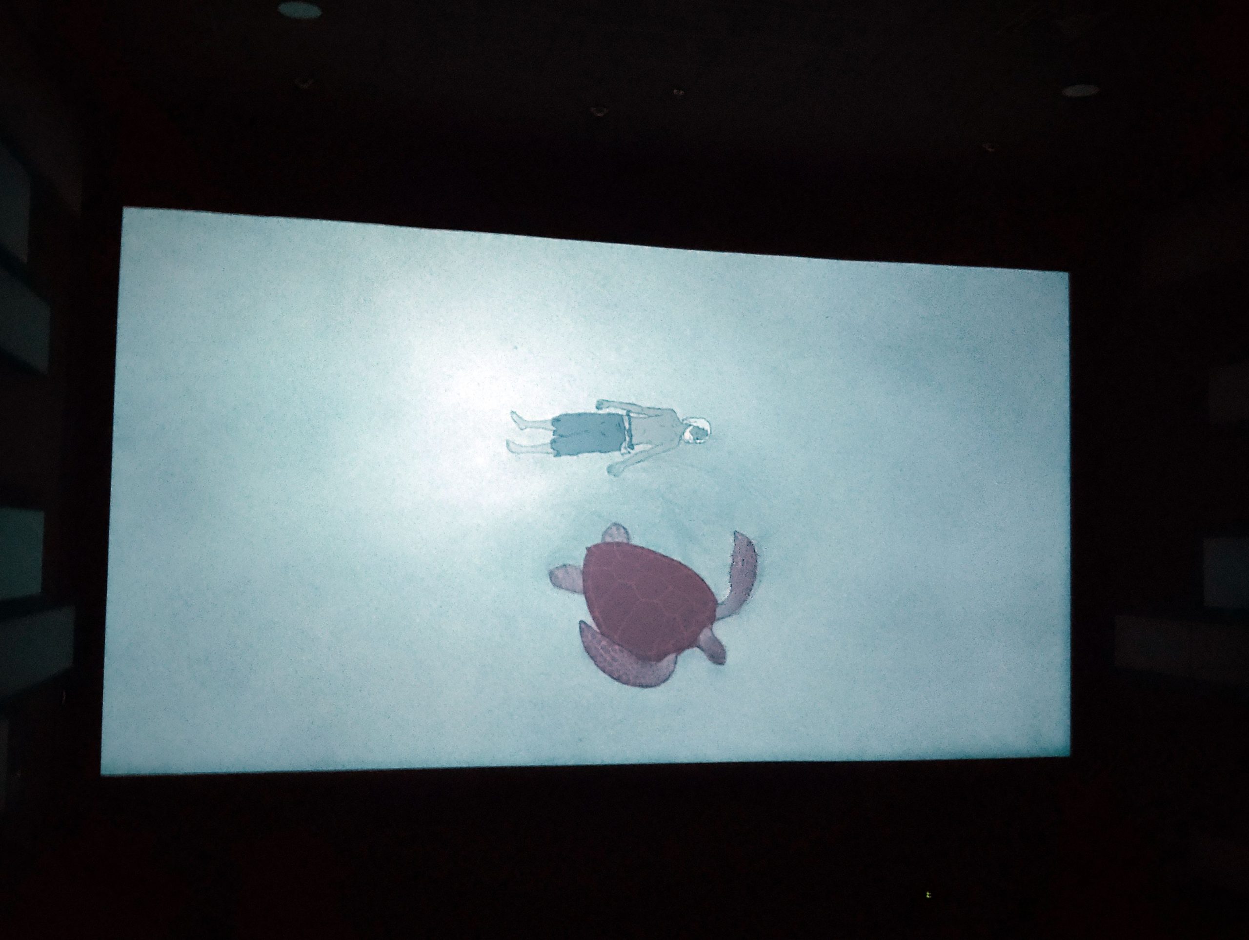 Mais le samedi, j’assistais à mon premier fil payant: un film d’animation, la Tortue Rouge! Programmé à 16h00, j’ai également failli ne pas le voir, une pluie comme nous n’en avions plus connue depuis longtemps entre 14h00 et 15h00 m’a fait craindre le pire!