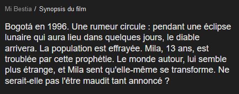 Incroyable, Antonin, un des profs spécialisé en cinéma au lycée a reçu 2 invitations pour le film de clôture du 23e festival de cine frances. Mais comme sa femme Paola est en réunion parents-profs (car elle est prof principale), il m’a proposé de l’accompagner! Au menu, un film colombien Mi Bestia.