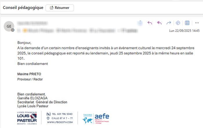 Sauf que cette année, cela est percuté par la convocation au premier conseil pédagogique, le mercredi 24 à 16h30. Impossible donc d’être à la cinemateca au centre-ville à 18h30, surtout vu l’ordre du jour.