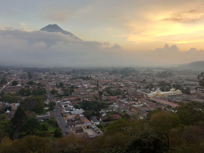 Après une rapide sortie nourriture et une sieste, nous repartons en fin d’après-midi, pour enfin aller au point de vue du Cerro de la Cruz, avant sa fermeture! Et d’où l’on repère facilement le volcan fumant du Fuego.