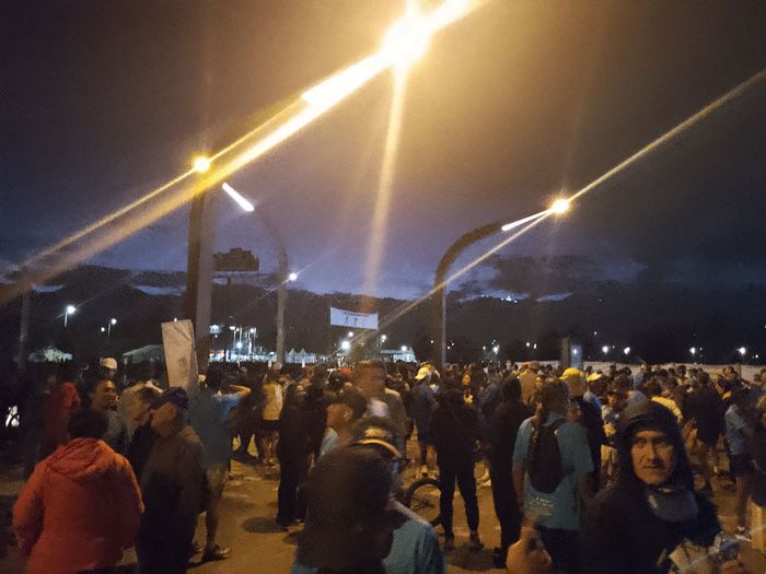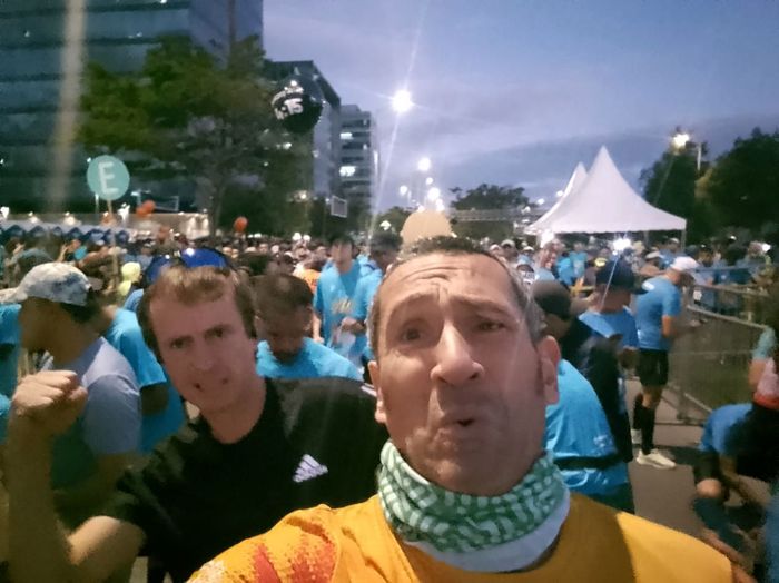 Départ prévu à 5h30 (on débutera à 5h45, pas si en retard pour la Colombie). En taxi, avec Raph, qui après une annulation du premier commandé, récupère Antonin puis ils m’attrapent sur le Septima, à 4h40 (levé 3h45 oui, oui) et 20 minutes plus tard, soit pile à 5h, nous rejoignons Nico das la zone de départ! Queue au toilettes, échauffement léger et entrée dans le sas. Anto et Nico en sas E, Raph et moi en D. Avec le meneurs d’allure du 4h00.