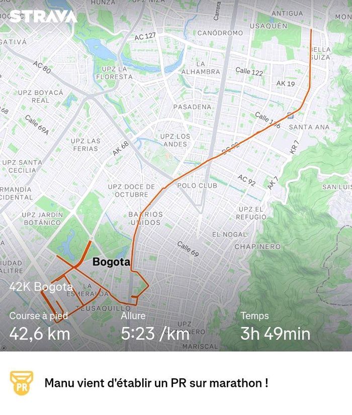 Moi aussi en vieillissant je suis tombé dedans. Alors que je n’étais pas vraiment formaté pour! Mais finalement je cours! Mon cœur penche pour la course nature (le trail) quoi, mais quand nous avons appris que Bogota organisait son premier marathon, qui n’a pas le droit de porter officiellement ce nom. Voici donc le récit du 42K de Bogota, qui s’est déroulé hier dimanche 1er décembre!
