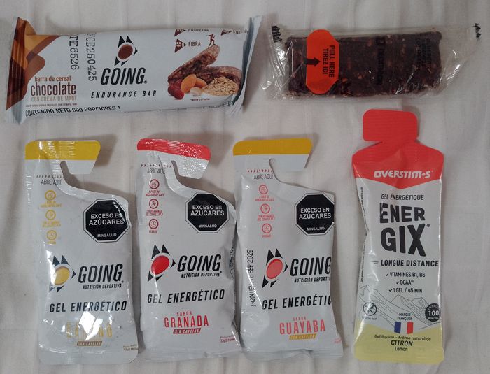 Et durant la course, tu sais le fameux 80g de glucide par heure de course! J’avoue n’avoir que peu utiliser les gels (même si j’en ai déjà avalé un ou deux durant de plus longs trails), je ne sais pas trop à quoi m’en tenir! J’en prendrais donc avec moi… ainsi que le fameux bocadillo (pâte de goyave) à 110% sucre!