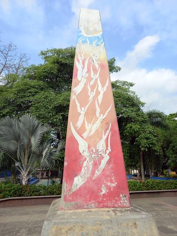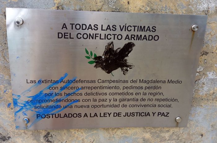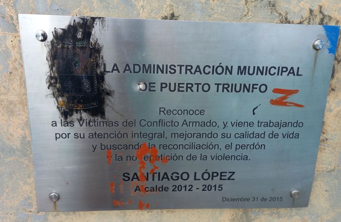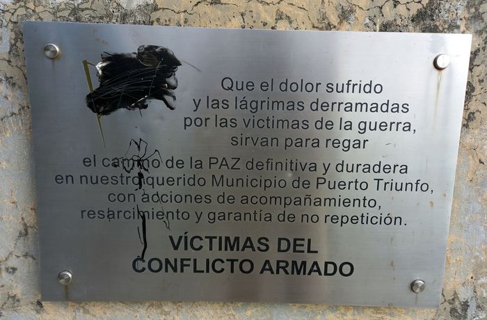 Ok ça c’est la théorie mais en pratique cela donne quoi! Outre ces monuments présents un peu partout sur les places centrales des villages situés en zone de guérilla, comme Puerto Triunfo….