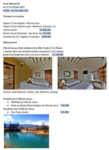 Mardi 27 – Vendredi 30 juin: pour ne pas qu’ils restent à Bogota à s’ennuyer, je leur ai organisé, avec l’aide des membres de l’ancienne agence Guayacan Trace, une virée coloniale à Villa de Leyva et Barichara, tout inclus avec une guide francophone. En voici le programme: