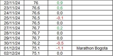 Assez simple dans sa structure, ce post commence par le chiffre annoncé par la balance le 1er décembre! Enfin ce qu’il annonce 2 fois! Car hier c’était Marathon de Bogota, le premier pour la ville et le premier pour moi également! Et je profite donc de l’occasion pour mesurer quelle peut être la perte de poids d’un « athlète » sur ce genre d’épreuve!