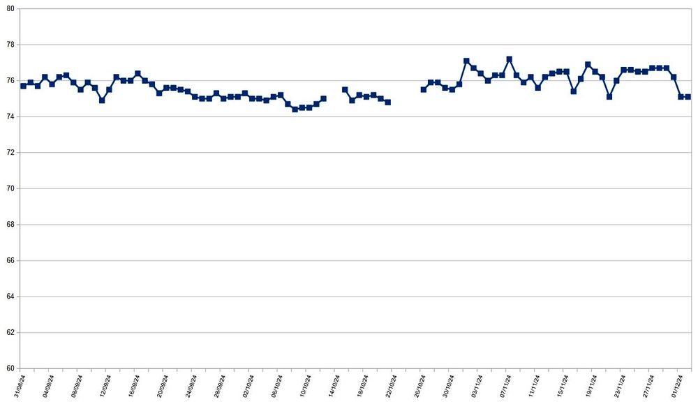 Cependant j’ai rajouté une date, avec une dernière pesée le lendemain, 2 décembre, la dernière intégrée dans mes données. Le lendemain, la balance est toujours sur 75,1. Il faut dire que bizarrement je n’ai pas beaucoup mangé après le marathon!