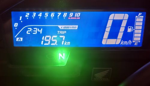 4h30 de moto, pour 195 km. Le tout sans pluie, parfait. Et un plein, même pas terminé, à 8€.