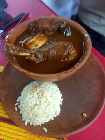 On passe au marché, très peu actif en ce 2 janvier: mais on y trouve de quoi se nourrir assez local (soupe d’abat et pepian de poule).