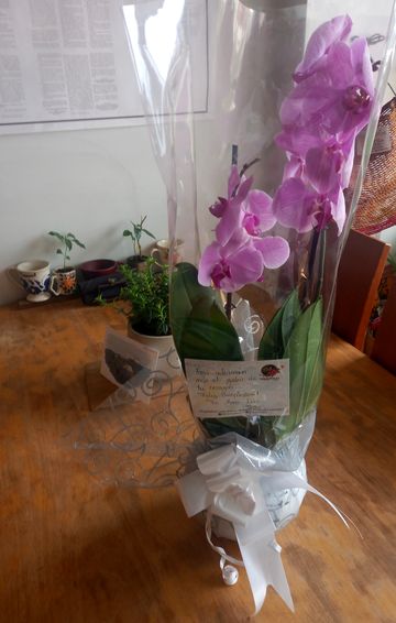 Par contre il ne fait pas bon vieillir, où alors je ne sais comment le prendre, mais on ne m’offre plus que des fleurs! L’orchidée arrivant le lendemain, envoyée par Lina.