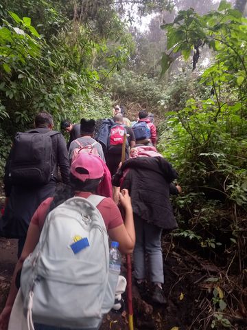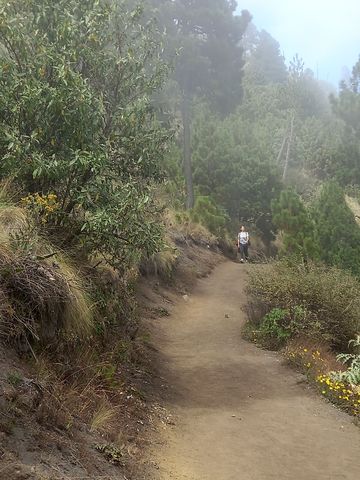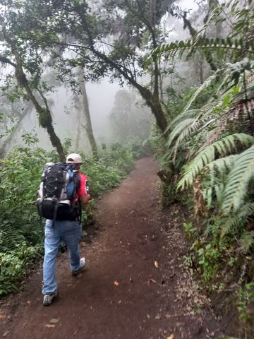 Mais le préambule se termine en fait par un coup de gueule: les agences se font donc une concurrence sévère, et des cohortes de touristes affrontent ces sentiers! Or cette rando n’est pas neutre, elle est physiquement et moralement éprouvante. Une vingtaine de kilomètres seulement en 36h mais presque 3000 mètres de dénivelé. Et un climat délicate: grosse chaleur durant le jour et très froid une fois le soleil couché (nuit aux alentours de 4000m d’altitude). La faute est partagée: les agences ne préviennent pas réellement du niveau d’exigence de la randonnée, le cachent même (et en plus nous, venant de Bogota à 2600m d’altitude, pas de soucis de respiration et d’acclimatation… mais les autres si). Cependant dans le prix est compris la fourniture de veste, gants, bonnets, lampe frontale (vu que les touristes sont venus sous les tropiques). Et en supplément, sac à dos, écharpe et bâtons de marche. Et les touristes, qui surévaluent leurs capacités physiques. Quand tu redescends, que tu croises des groupes qui ont fait à peine 500 mètres, sont rougeauds, ont bu la moitié de leur réserve d’eau et râlent, tu te dis, toi qui connais la suite, tu sais que cela va être difficile. D’ailleurs, notre guide nous avouera que, même si la plupart atteigne le camp de base, plus de la moitié ne profite pas des 2 autres activités (couché de soleil sur le volcan Fuego en fin d’après-midi) et levé de soleil sur l’Acatenango le lendemain matin, avant la redescente!