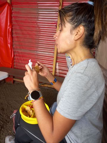 Déjeuner frugal et repos après avoir pris nos aises (autre avantage du tour privé, nous occuperons seuls ce petit chalet, sans eau i électricité; d’autres sont plus luxueux mais d’autres dorment en tentes).