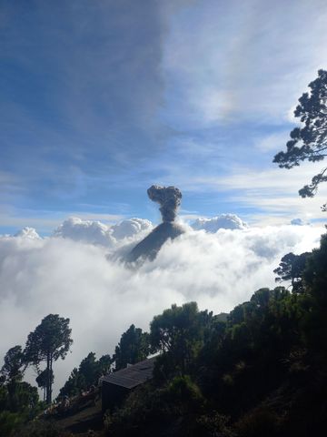 Sauf que durant la sieste, une forte explosion nous fera compendre que le second volcan non loin, le Fuego est lui en activité!! De type « explosif », car une explosion-expulsion de débris se produit toutes les 20-30 minutes!