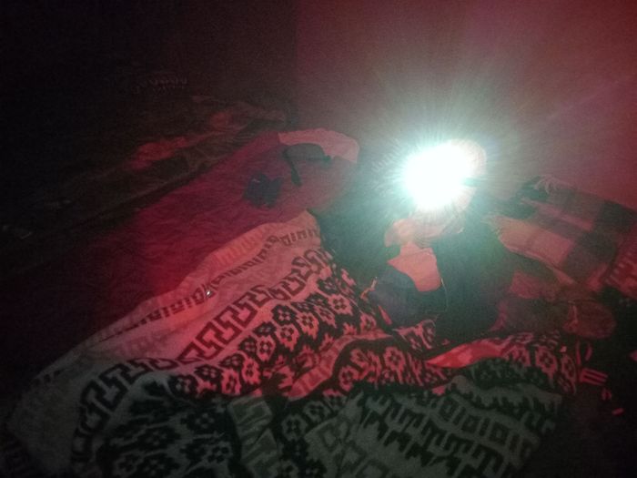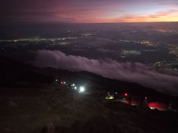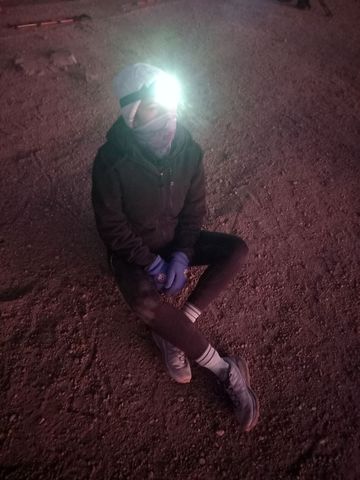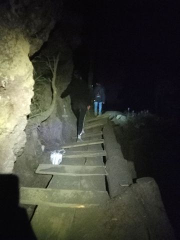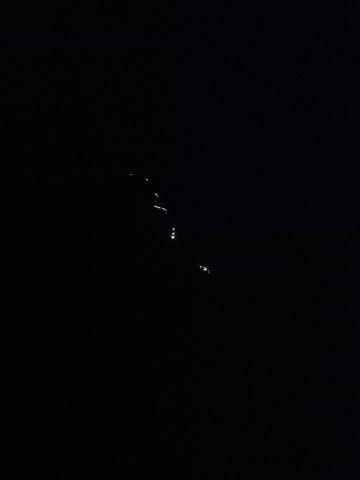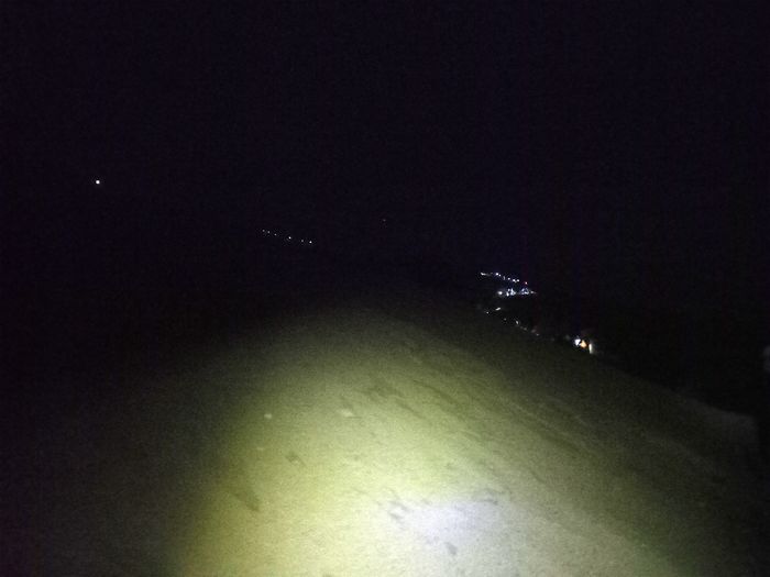 Retour au camp de base à la frontale (avec la montagne illuminé par tous les groupes redescendant)….
