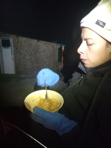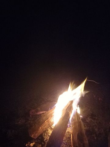 Puis repas au coin du feu (enfin à l’extérieur le feu), puis au lit pour une nuit qui, vu l’isolation du lieu, risque d’être fraîche!