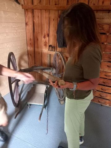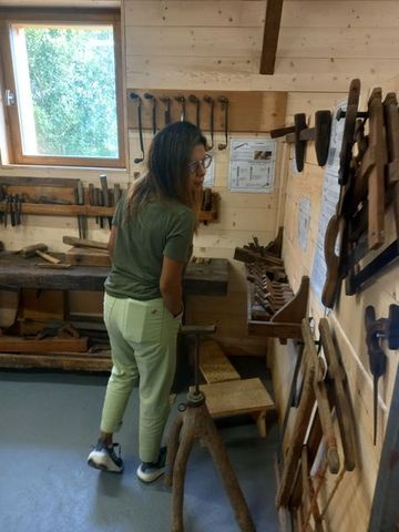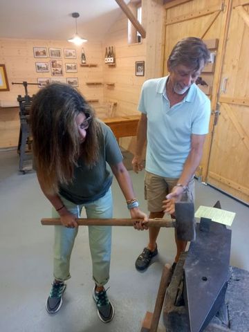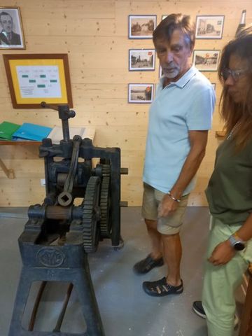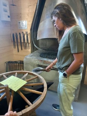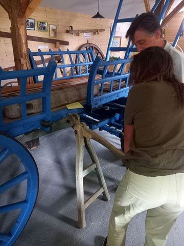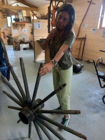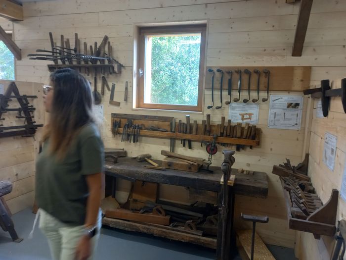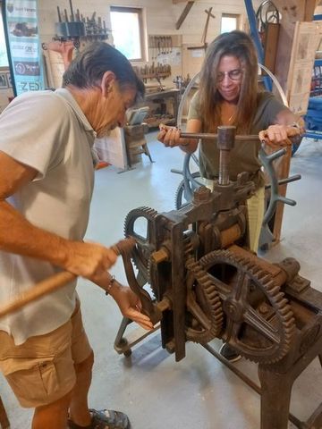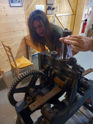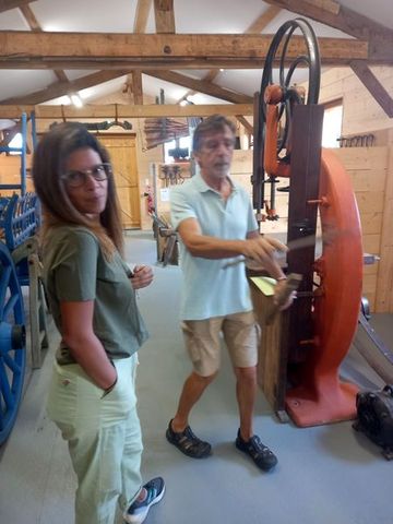 En tout cas, de nombreux outils anciens, des machines issues de l’atelier ou rachetées, et une visite dynamique qui a beaucoup plus à Lina qui adore participer comme tu le vois!