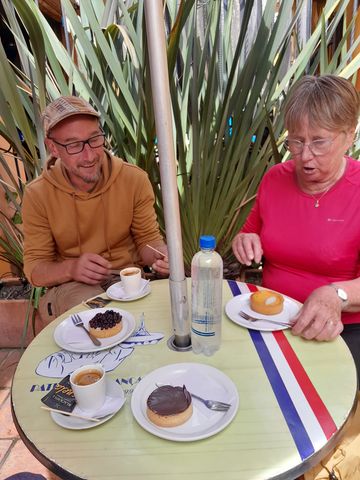 Mais ne vous inquiétez pas, ils ne sont pas morts de faim! Un arrêt café-collation à la Pâtisserie Française dans la Candelaria…