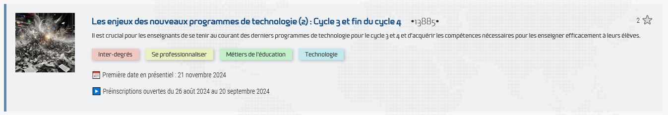 Enfin au niveau plus professionnel, dès la rentrée il faut penser à sa formation personnelle, en choisissant les stage dans le PRF (Plan Régional de Formation)….. Je tente ma chance avec un stage sur le développement durable (fais-moi penser à t’expliquer mon nouveau rôle de ce côté là) et sur un stage obligatoire, celui sur les nouveaux programmes de technologie, qui après la 5e, arrivent en 4e.