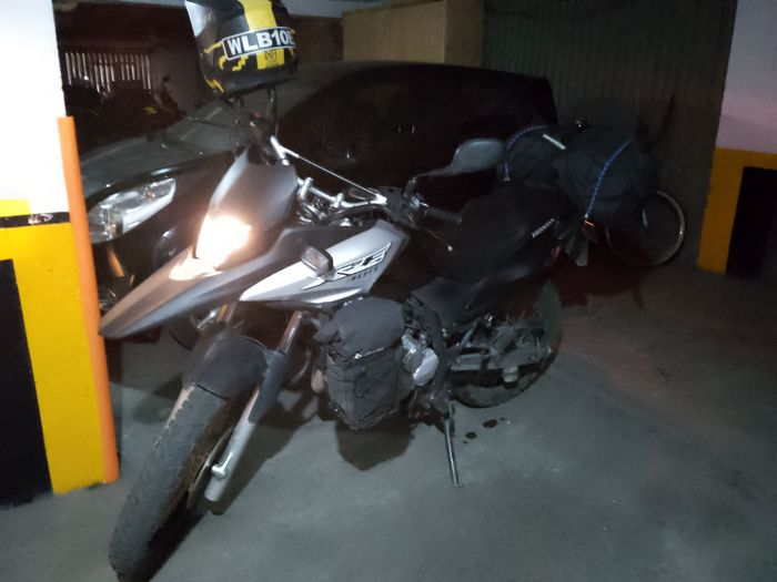 Le dernier datait d’il y a fort longtemps: janvier 2023, soit presque 2 ans! J’ai donc profité de mes 3 jours de présence à Bogota sans boulot, pour aller voir mes voisins de TuMoto, et demander un « mantenimiento preventivo ». Vérification roue avant/roue arrière, câbles, roulements et changement d’huile (que j’amène moi-même, ayant enfin compris comment cela marche).
