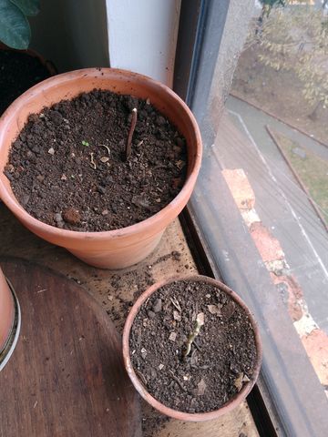 Ici non plus ce n’est pas bien beau à voir , j’ai repiqué 3 « granadillers » dans de nouveaux pots mais ça végète !