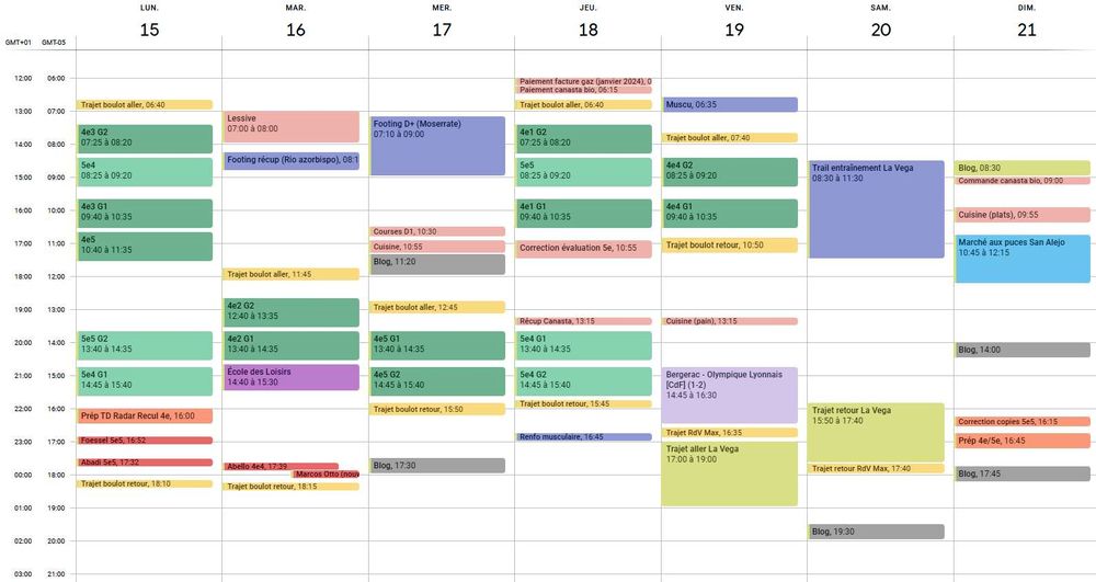 Tu connais tes classiques, voici les agendas des 2 semaines écoulées. Les 2 au boulot, dont une avec 2 soirées de réunions parents-professeurs.