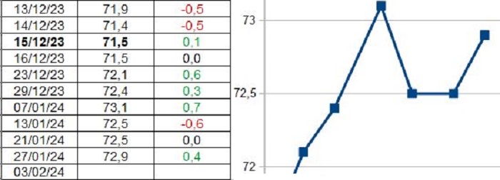 Rien de particulier à noter, donc dans ce cas, on regarde juste la courbe d’évolution du poids de l’expatrié (qui n’a pas mangé de galette lui)!