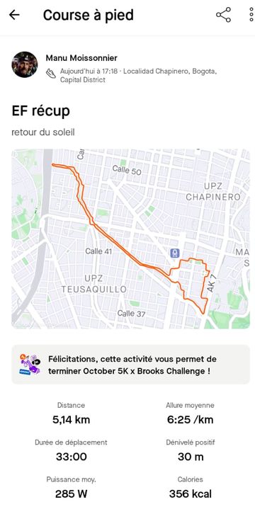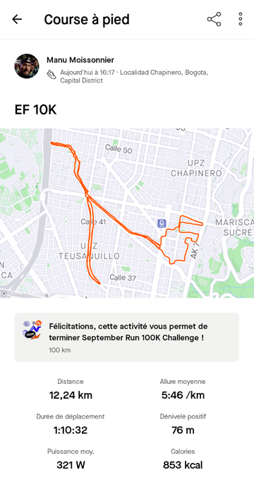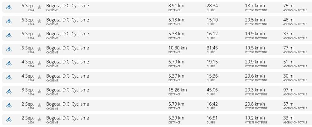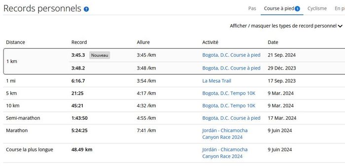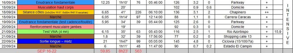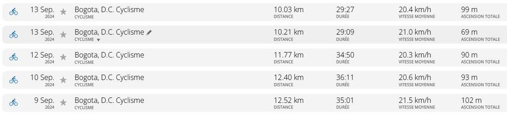 Cela commence à faire long depuis le dernier point, datant de la Carrera de la Mujer off, et donc cela ferait beaucoup de tableau ou de copies d’écran. Alors je me colle au résumé de mon entraînement de course à pied, depuis cette date. Voici donc le bilan running de la mi-octobre 2024, quasiment depuis mon retour en Colombie!
