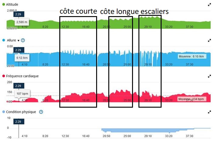 Je m’y remets plus sérieusement et de manière plus constructive! La prochaine course sera un trail il faut donc faire un peu de dénivelé.