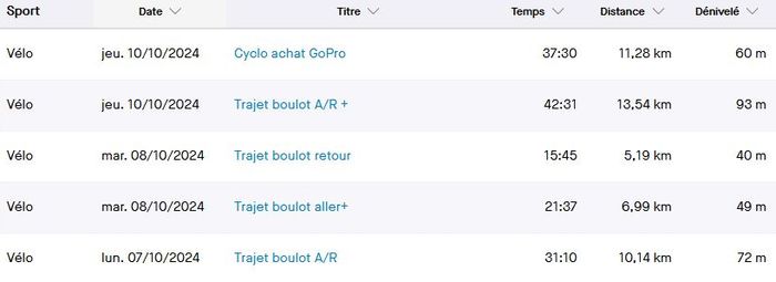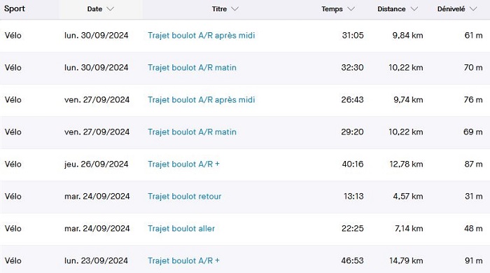 Sans oublier le vélo! Qui n’inclut pas les 10 km de ce jour (vendredi 11 octobre).