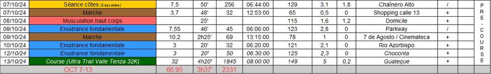 Bilan running de mi-octobre 2024