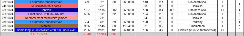 Et le bilan running suivant pour cette semaine: