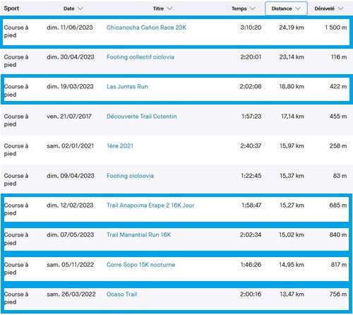 Merci à l’application Strava donc, et à ma fainéantise, puisque les trails se retrouvent facilement, ce sont les plus longues distances que je cours!