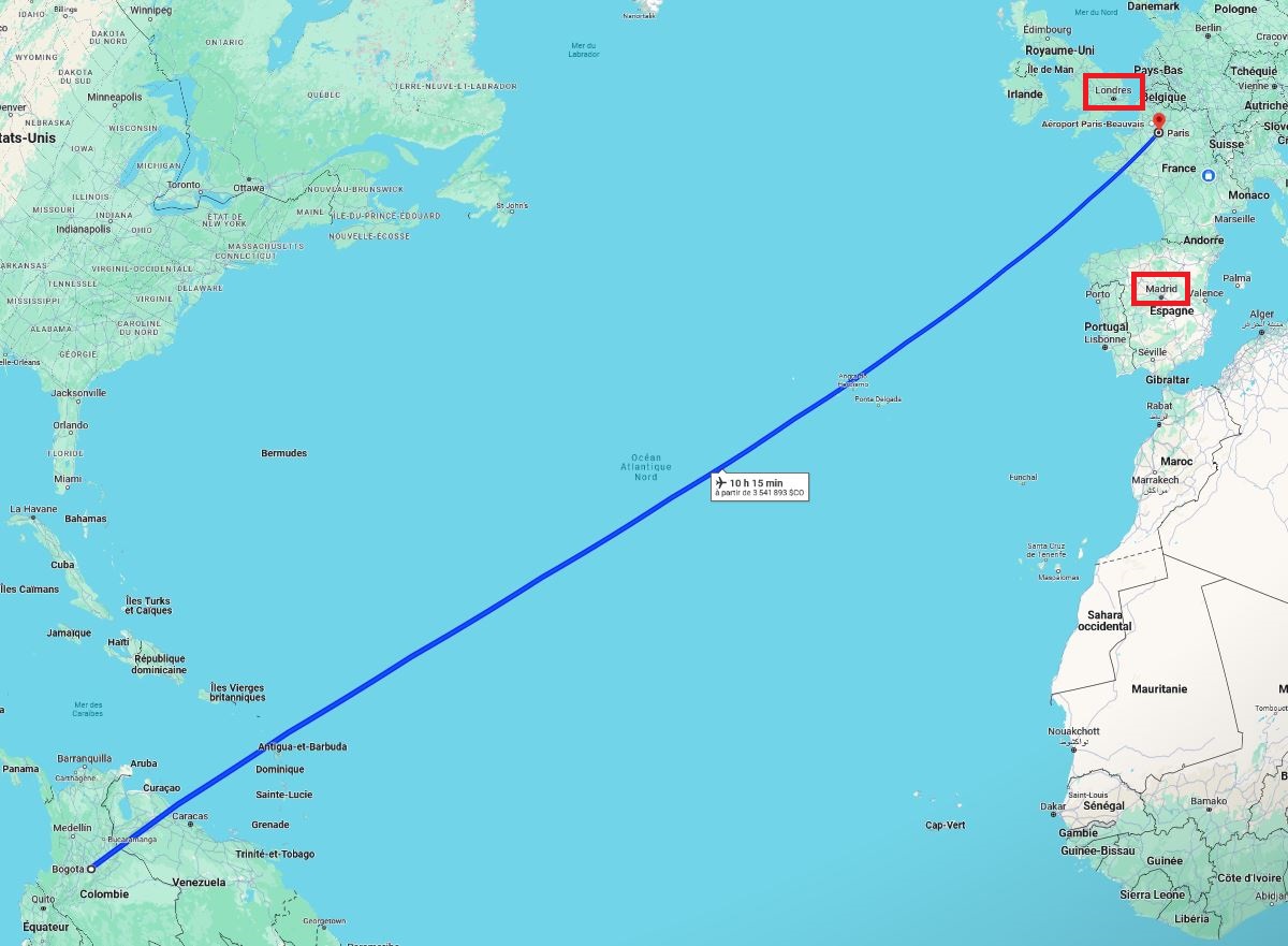 1. Si possible un vol direct, ou avec le moins d’escale possible (le Bogota-Lyon en direct n’existera jamais). Même si cela coûte plus cher!