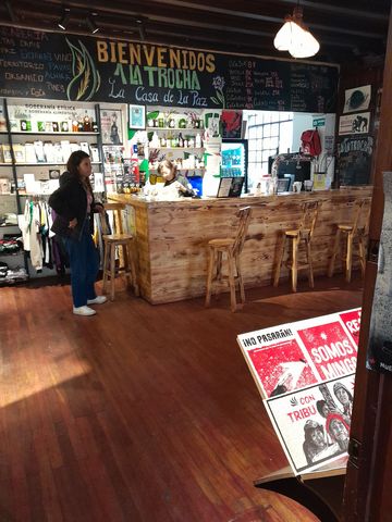 Avec la particularité que les objets qui y sont vendus, affiches, habits, sacs,….., ou les bières servies, sont le résultats du travail d’ex-guérilléros de la FARC, démilitarisés après les signatures des accords de paix avec le gouvernement. Une tentative de réintégration, parmi d’autres, pour des personnes qui sont parfois entrées dans la guérilla avant même leur 15 ans. Donc outre affronter le ressentiment d’une grande partie de la population, il faut aussi découvrir une société qu’ils ne connaissent pratiquement pas.