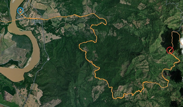 En pleine montée, entre Cambao, sur le Rio Magdalena, et San Juan de Rio Seco, dans la montagne, alors que nous avions quitté notre dernier lieu de villégiature, Ambalema, à peine 45 minutes plus tôt!