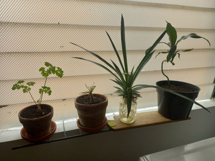 Et puis tous les pots divers et variés! Avocatiers, citronniers (dont un qui a vraiment profité du changement d’appart), géraniums…..