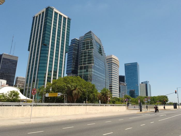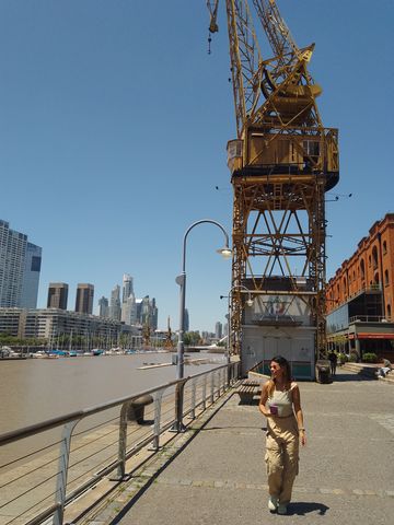 Premier quartier traversé ce jour, après le petiut déjeuner gargantueste e l’hôtel( à base de croissants si, si appelés « facturas » ici), Puerto Maduro, le port donc, quartier fort chic et prisé, fait d’appartements de luxe dans des grandes tours vitrées avec vue sur le Rio de la Plata, entre les installation portuaires au sud et aussi au nord.