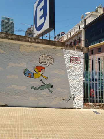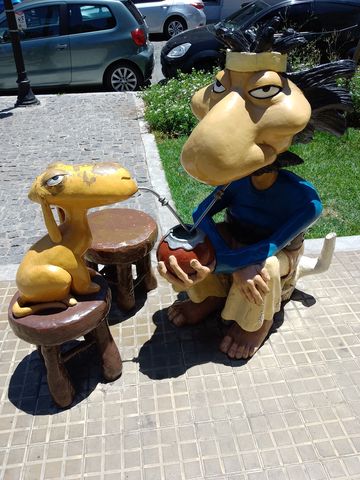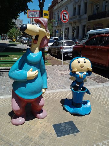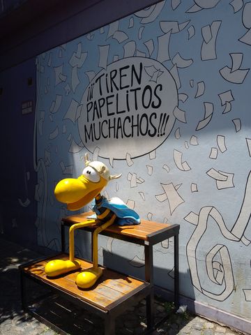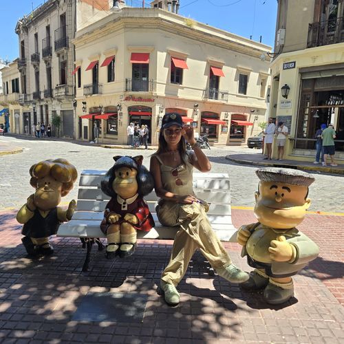 Mais dans ce quartier, nous avons suivi le paseo de las historeta. En gros, les figures de bandes dessinées argentines, qui ont marquées les années d’enfance de Lina. Parce que nous, à part Mafalda, nous n’en connaissons quasiment aucune! Pour cette dernière, enfin son effigie, j’ai même du faire la file pour illustrer la miss avec!