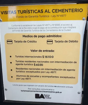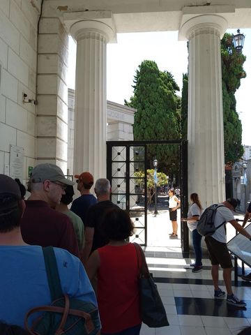 Tu le sais, nous jetons dès que nous pouvons, un œil au cimetière! la façon dont une culture gère ses morts en dit souvent beaucoup! Celui-ci est très connu, avec beaucoup de tombes d’illustres argentins de l’Histoire. Par contre, payer 15€ par personne pour une visite de cimetière, cela on ne me l’avait jamais fait!
