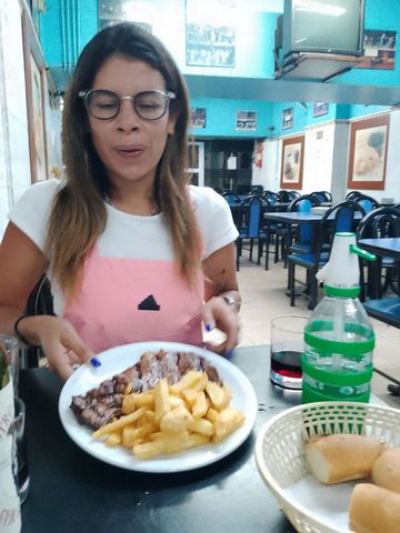 Comme la veille, un lieu assez populaire, bon et bon marché! Chivito (sandwich) et grillade, à partager! Ave, pays producteur oblige, une bouteille de vin local pour changer de la bière. Le tout, pour 22€, avec un dessert partagé!