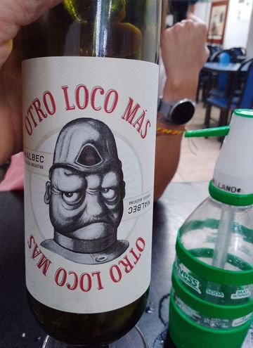 Et une bouteille de vin au nom étrange « un autre fou de plus » et à l’étiquette amusante!