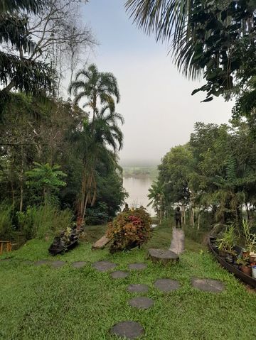 Un peu à l’écart du village de Puerto Nariño, l’hôtel s’atteint en lancha… mais aussi, heureusement à pied (1,5km).