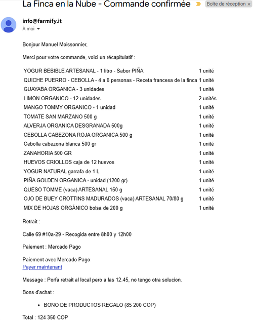 En plus de me fournir de manière hebdomadaire mes légumes et fruits bios, mes produits laitiers de chez Dédé, fromages ou encore yaourts. En plus de mes gains au concours (grâce surtout à Yvette et son sponsoring caché de l’initiative de Jean qu’elle a pu visiter avec Ludo). Et bien la Finca en la Nube m’offre également un cadeau!
