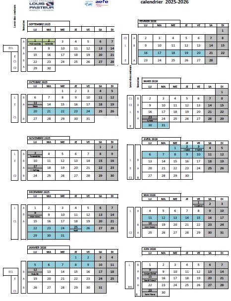 Calendrier scolaire 2025-2026