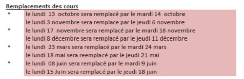 Voilà donc les inversions prévues pour l’année à venir! 4 mardi deviennent des lundi, ainsi que 4 jeudi. Donc seuls 2 lundi restent fériés.