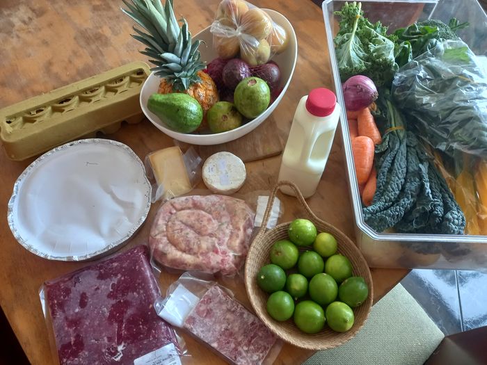 Tu reconnaîtras donc de nombreux produits, avec mes incontournables, l’ananas, mon produit fétiche, divers fruits, le yaourt toujours présent, du fromage et pas mal de légumes déjà entraperçus.