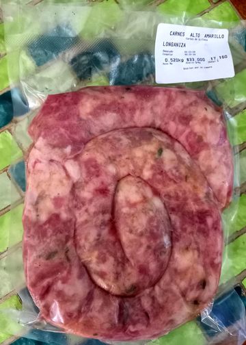 Cependant, le grand ajout sur les produits disponibles, c’est la viande! J’ai donc, pour tester et pour ne même plus aller en supermarché, la viande hachée, la longaniza (saucisse locale) et le fameux fromage de tête. Qui bizarrement et contrairement à celui, dominical, du marché aux puces San Alejo, est livré … congelé (j’étais persuadé que ce genre de charcuterie ne se congelait pas…)!