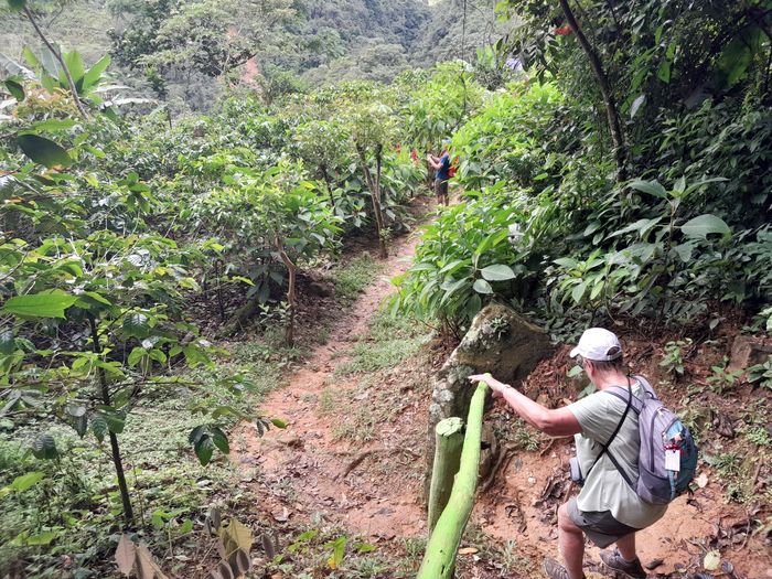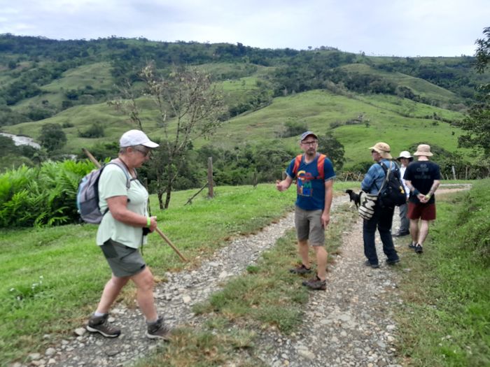 Présentation, organisation et nous voilà donc partis pour la découverte de la finca! Ambiance étrange, groupe de 6, nous 3 et une famille de 3 colombiens, une histoire familiale contée de manière assez romancée, des pause photos nombreuses et très « insta »….